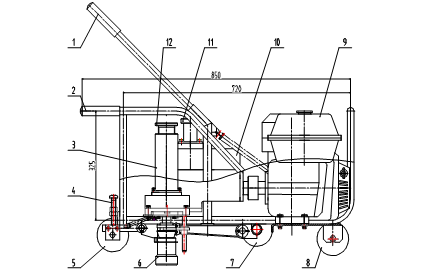 1操縱桿(gan)、2機架、3扭矩調(diao)整器、4調(diao)整螺釘、5后(hou)軌行(xing)輪、6扳頭、7輔助支承輪、8前軌行(xing)輪、9汽(qi)油(you)機、10齒(chi)輪箱、11換(huan)向手輪、12扭矩調(diao)整手輪