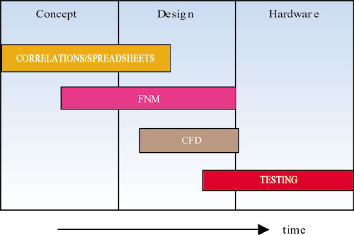 FNM techniques are easy to master as long as the 2D air flow paths can be clearly defined. In some cases, 2D flow path prediction is not possible and advanced techniques such as CFD or testing may be warranted. Regardless of whether FNM-specific software or spreadsheets are used, solutions are gained within seconds. This is extremely important in this phase of the development cycle.