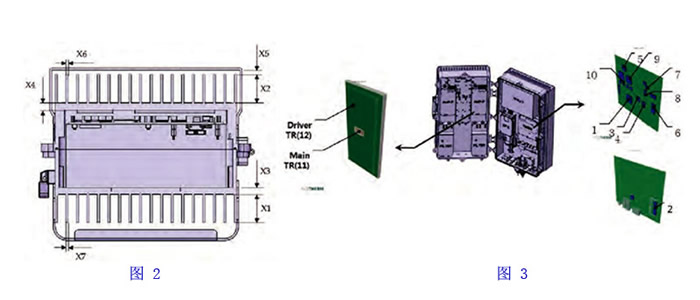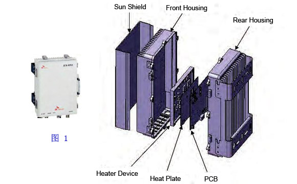 散熱器設(shè)置理想的高度、厚度和基底厚度以及為遮陽(yáng)板和基站前 端散熱器間設(shè)置理想的間隔(如圖2)。