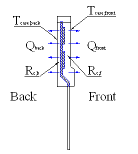 由于在整流橋殼體表面上的兩個(gè)傳熱途徑上(殼體正面、殼體背面)的熱阻分別為: