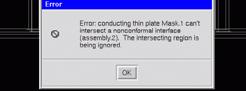 你會(huì)看見(jiàn)一個(gè)警告信息,說(shuō)是thin plate 和non-conformal的邊界相交了. 注意這個(gè)提示實(shí)際上產(chǎn)告訴你,你違反了規(guī)則,如圖2所示。