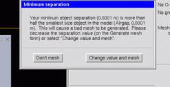 這個警告的出現(xiàn)是因為物體的間距大小最小物體特征的10%(將它考慮為網(wǎng)格容差設置)