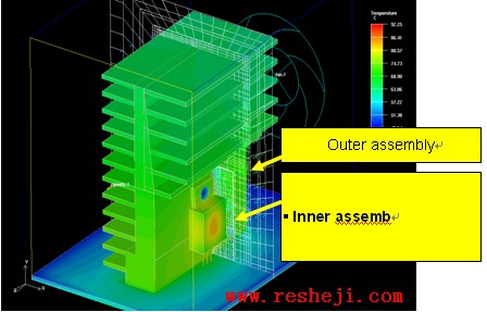 另外,Icepak的非連續(xù)網(wǎng)格可以無(wú)限制嵌入。下圖是兩層嵌入網(wǎng)格的模型。