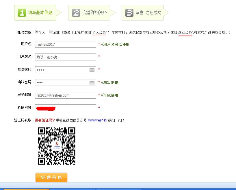三、個(gè)人會(huì)員注冊示例: