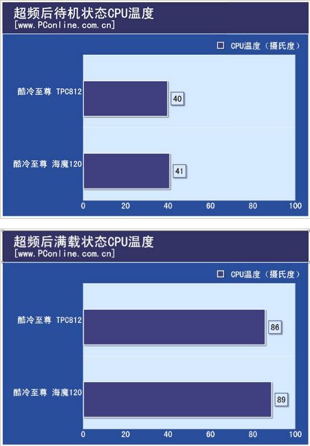 測試小結(jié):通過上述測試,酷冷至尊在300元級別的散熱狀況測試,酷冷至尊 TPC812略為出色,但差距并不是十分明顯,除了在超頻后滿載相差3℃之外,其余均只相差1℃。目前暫時,風(fēng)冷隊以1:0的成績領(lǐng)先于水冷隊,下面我們再來看一下600元級別的對決。