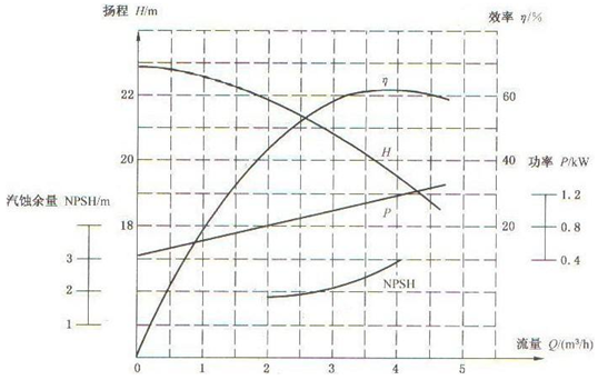 3. 再次,結(jié)合泵的特性曲線(xiàn),查詢(xún)待選泵的工作點(diǎn),得出泵功率、效率,核算當(dāng)前工作狀態(tài)下泵的汽蝕余量是否滿(mǎn)足要求;