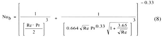 是空氣密度。公式(8)幾乎覆蓋了層流的全部范圍。作者通過(guò)對(duì)大范圍的Reynolds修正數(shù)(0.26 < Reb < 175)的數(shù)字結(jié)果進(jìn)行對(duì)比以及與一些實(shí)驗(yàn)數(shù)據(jù)的對(duì)比驗(yàn)證了公式(8)的有效性。使用由公式(8)得出的Nusselt數(shù),對(duì)流換熱系數(shù)就可由以下公式算出: