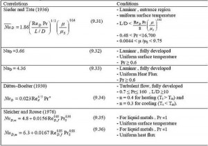 管內(nèi)強(qiáng)迫對(duì)流的努賽爾數(shù)計(jì)算經(jīng)驗(yàn)公式如下: