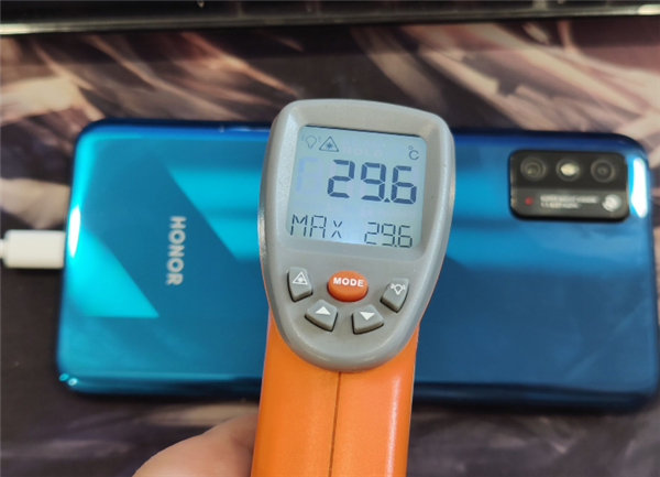那榮耀X10 Max手機(jī)的機(jī)身到底給它帶來了多大的散熱加成呢?我們選擇了視頻、游戲、充電三大發(fā)熱最高的場景來做了測試,用紅外儀記錄手機(jī)背部發(fā)熱最高的區(qū)域,室溫環(huán)境溫度為26°C,下面來看看具體的結(jié)果。