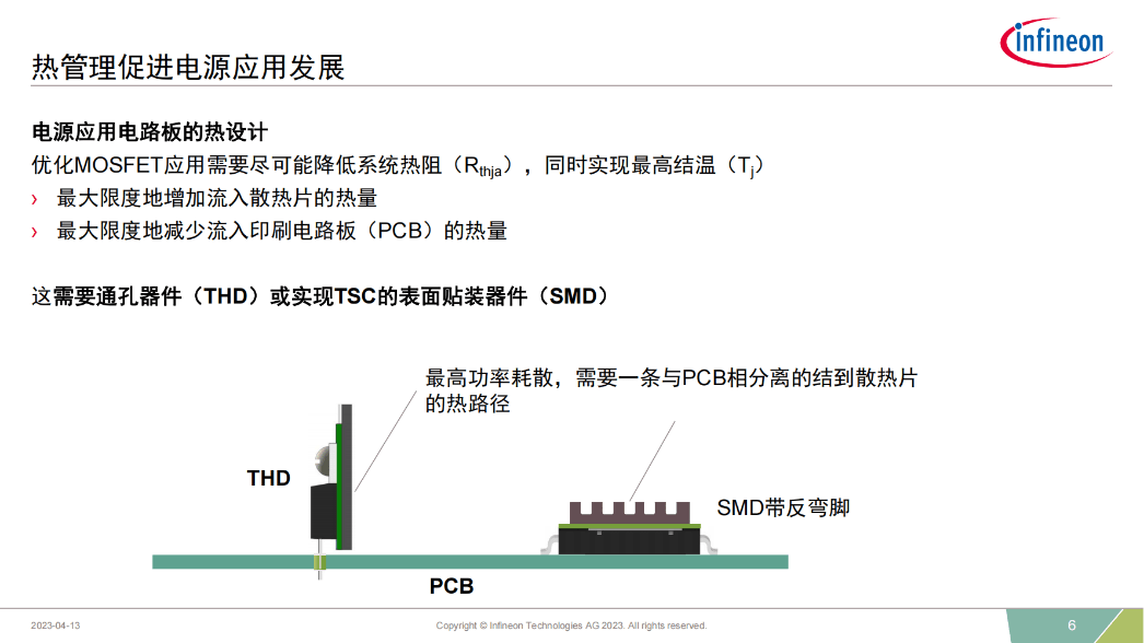 優(yōu)化MOSFET應(yīng)用需要盡可能降低系統(tǒng)熱阻(Rthja),同時(shí)實(shí)現(xiàn)最高結(jié)溫(Tj)。如此一來(lái)能夠最大限度地增加流入散熱片的熱量,并最大限度地減少流入PCB的熱量。