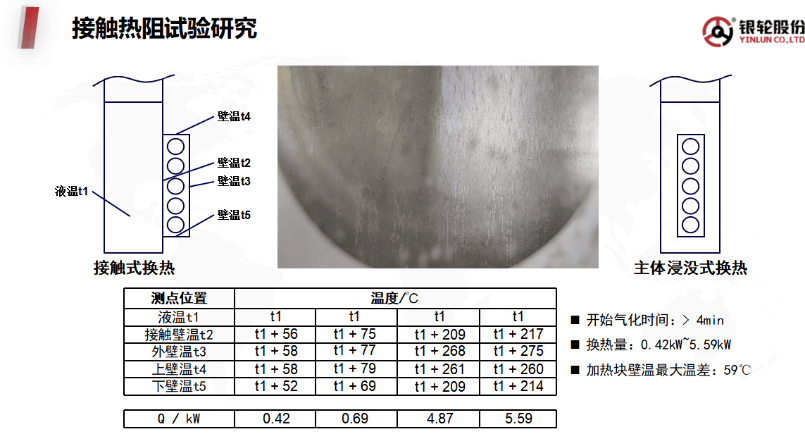 關(guān)鍵數(shù)據(jù)表明:接觸式換熱中加熱塊t2點(diǎn)溫度達(dá)液溫+275℃,而五面浸沒時(shí)冷媒11秒內(nèi)啟動(dòng)相變沸騰(接觸式需260秒);顯熱/潛熱對(duì)比進(jìn)一步揭示防凍液顯熱僅16.8-21kJ/kg(5-6℃溫升),R134a相變潛熱216kJ/kg則相當(dāng)于防凍液溫升66.7℃,二者相差66倍。