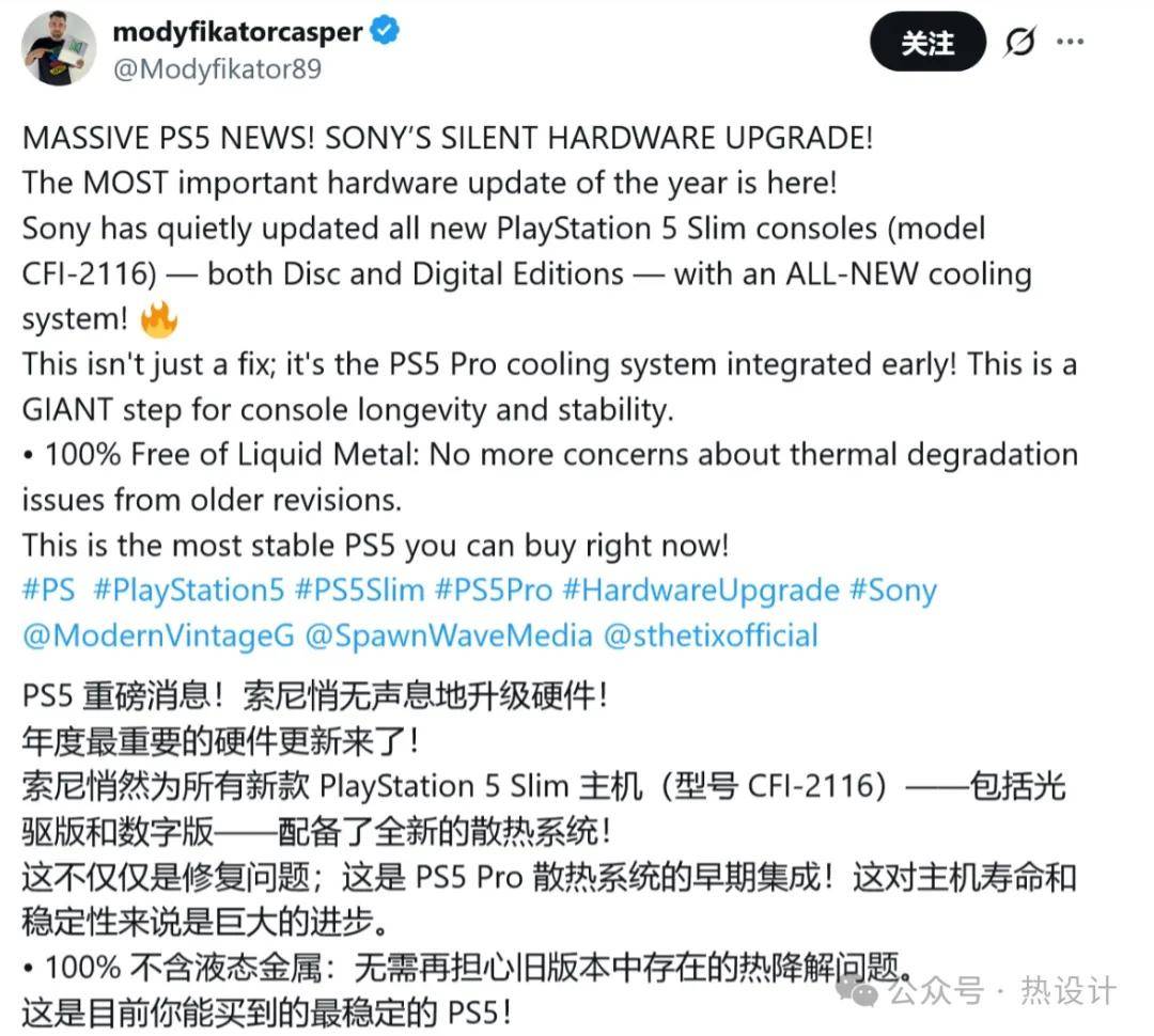 如今,這一優(yōu)化舉措已延伸至定價更低的PS5 Slim 機型。PS主機改裝者Modyfikator認為,經(jīng)過重新設(shè)計的主機將讓玩家擺脫散熱相關(guān)的困擾:“舊版本機型的散熱老化問題將不復(fù)存在,這是目前能買到的最穩(wěn)定的PS5?!?/p>